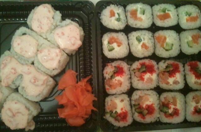 Вкусные, свежие сууууши. Делают в срок. Только мало васаби и имбиря в заказ кладут. Может кому-то и хватает, а мне нет